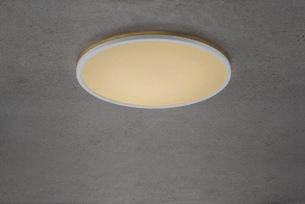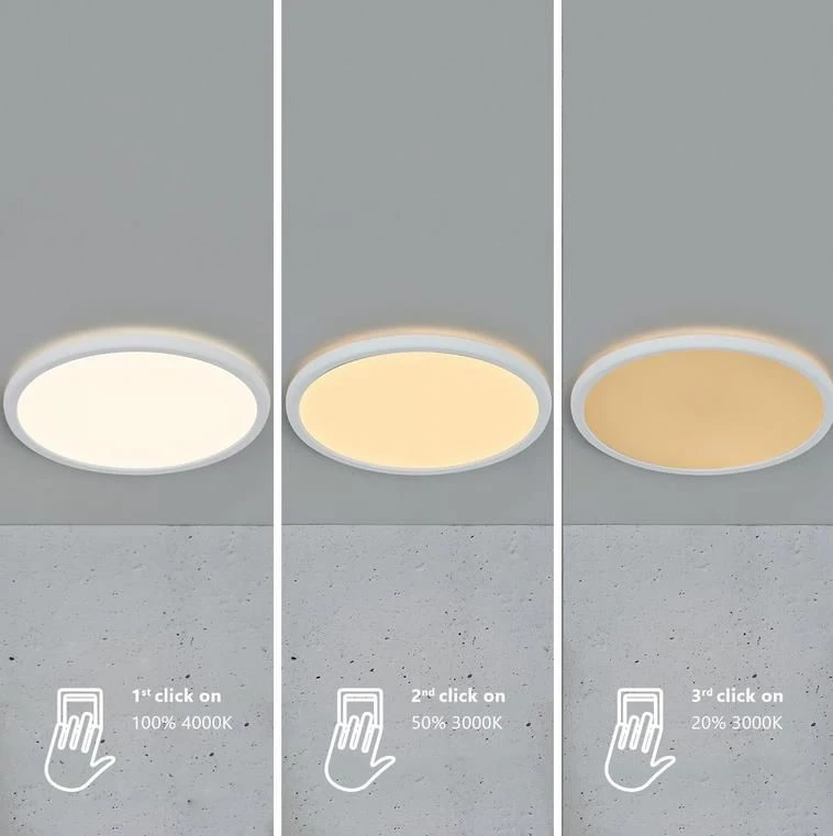 Bereichern Sie Ihre Umgebung mit Licht und profitieren Sie vom Nutzen und der Ästhetik von einer gut geplanten Wohnraumleuchte, wie dieser flachen weißen in 3 Stufen dimmbaren Deckenleuchte.
